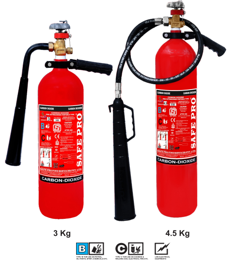 Carbon Dioxide fire extinguishers are ideal for use on Class B Fire Risks. The carbon dioxide fire extinguishers are available in 2kg, 3kg, and 4.5kb standard Versions.